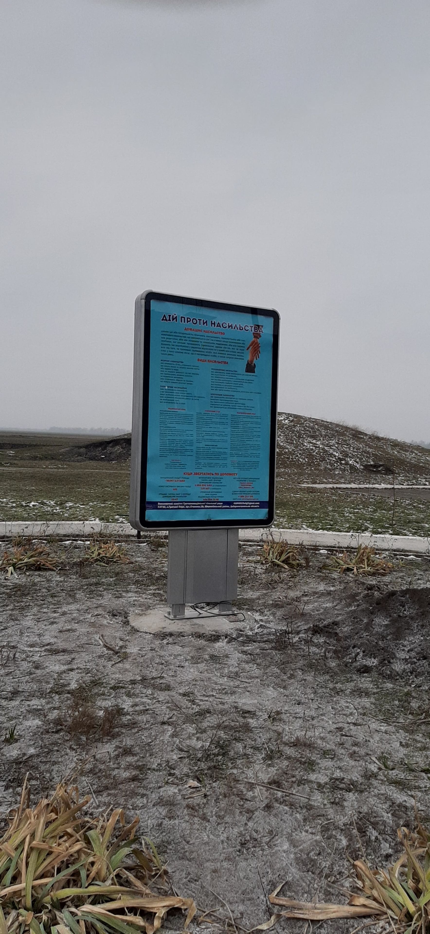 Щорічно в Україні, з 25 листопада до 10 грудня включно, проводиться Міжнародна кампанія "16 днів проти насильства". Цьогоріч наша громада за підтримки сільського голови розпочала акцію з "Дня вітань. Не пропустіть людини, не привітавши її, і добре словом їй мовте". Всі заклади освіти активно прийняли участь в Акції та креативно підійшли до Вітань. Продовженням Акції став конкурс малюнків на тему «СТОП НАСИЛЬСТВО. Всі малюнки було використано на виставці під час вуличної акції «Хвилина на посмішку». За підтримки Програми DOBRE наша громада отримала сіті-лайт, який сьогодні ми використовуємо, як інформаційний стенд, на якому першим розмістили інформацію щодо акції «16 днів проти насильства». До 10 грудня планується проведення уроків з учнями на тему: «НІ насильству».