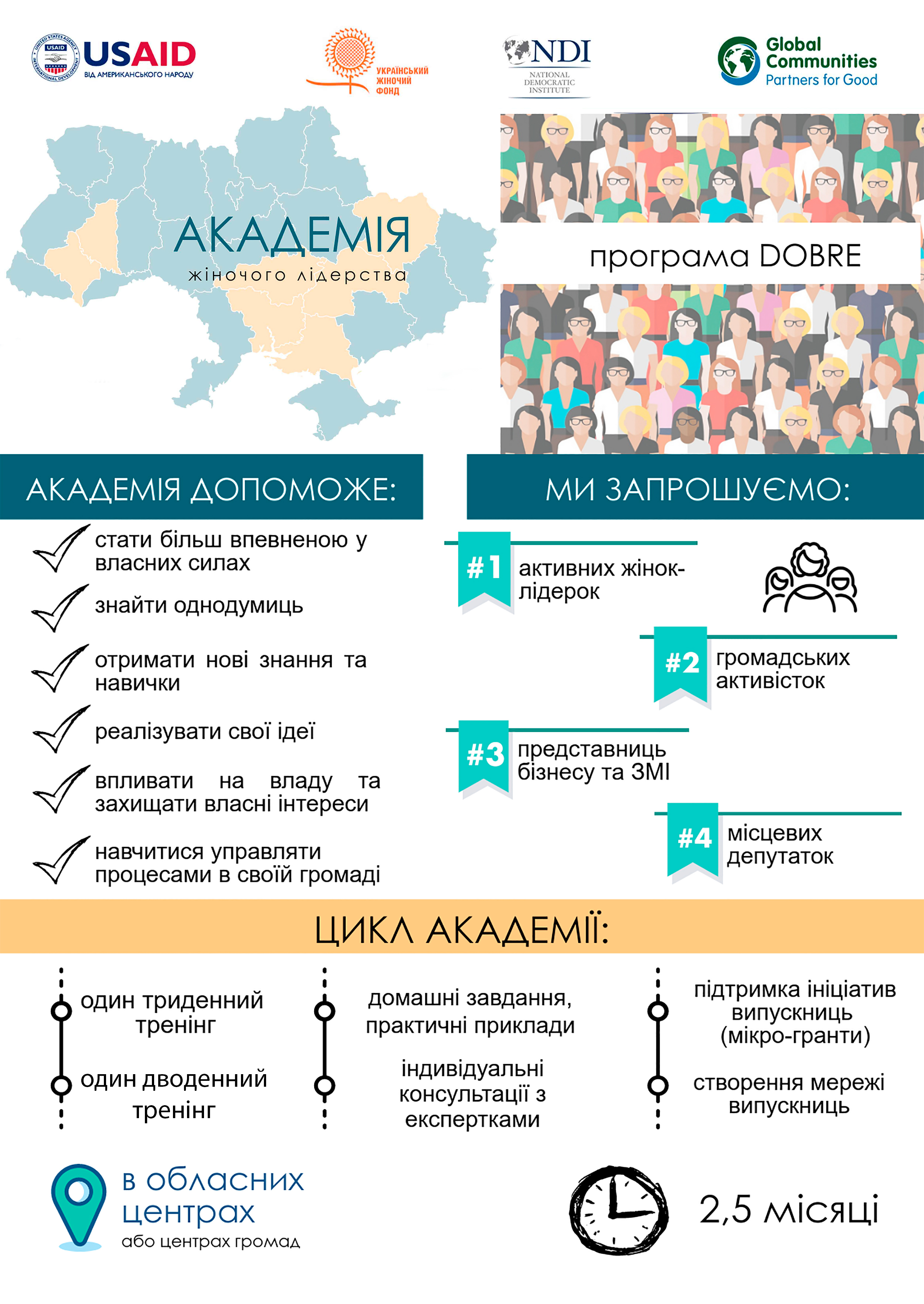 Українській жіночий фонд в партнерстві з Національним Демократичним Інститутом Міжнародних Відносин (США) оголошує набір учасниць в «Академію Жіночого Лідерства».
