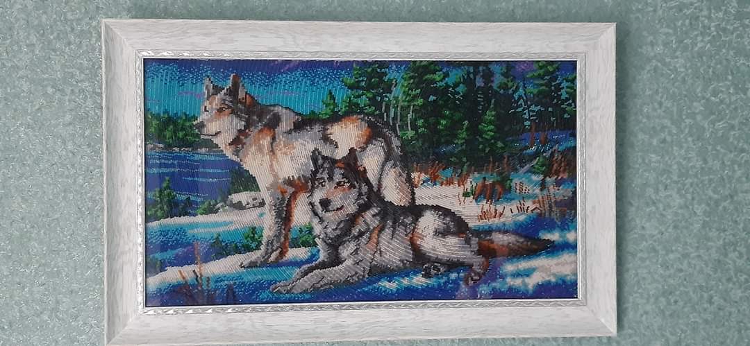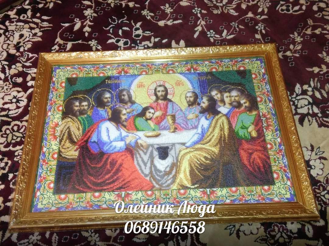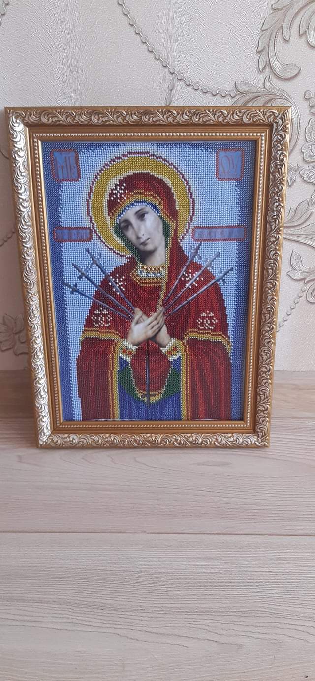 Свою першу роботу Людмила прекрасно пам’ятає і досі зберігає. Це була ікона Почаївської Божої Матері. Саме з цієї роботи розпочавсь її час навчання в такому нелегкому ремеслі як вишивка. Дитячих робіт, нажаль, майже не збереглося, але ця ікона є найдорожчою, адже з неї почався її творчій шлях. Є й улюблена картина бісером – «Вовки», яка складна у виконанні, бо в ній дуже насичена кольорова гама та техніка виконання, тому і дорога серцю. Інколи, дивлячись на свої перші вишивки, Людмила згадує, як у них росла її майстерність. Ікона ж взагалі має своєрідний ритуал. Адже лик святого треба вишивати з чистим серцем, добрими думками, спокійно і обов’язково в тиші.