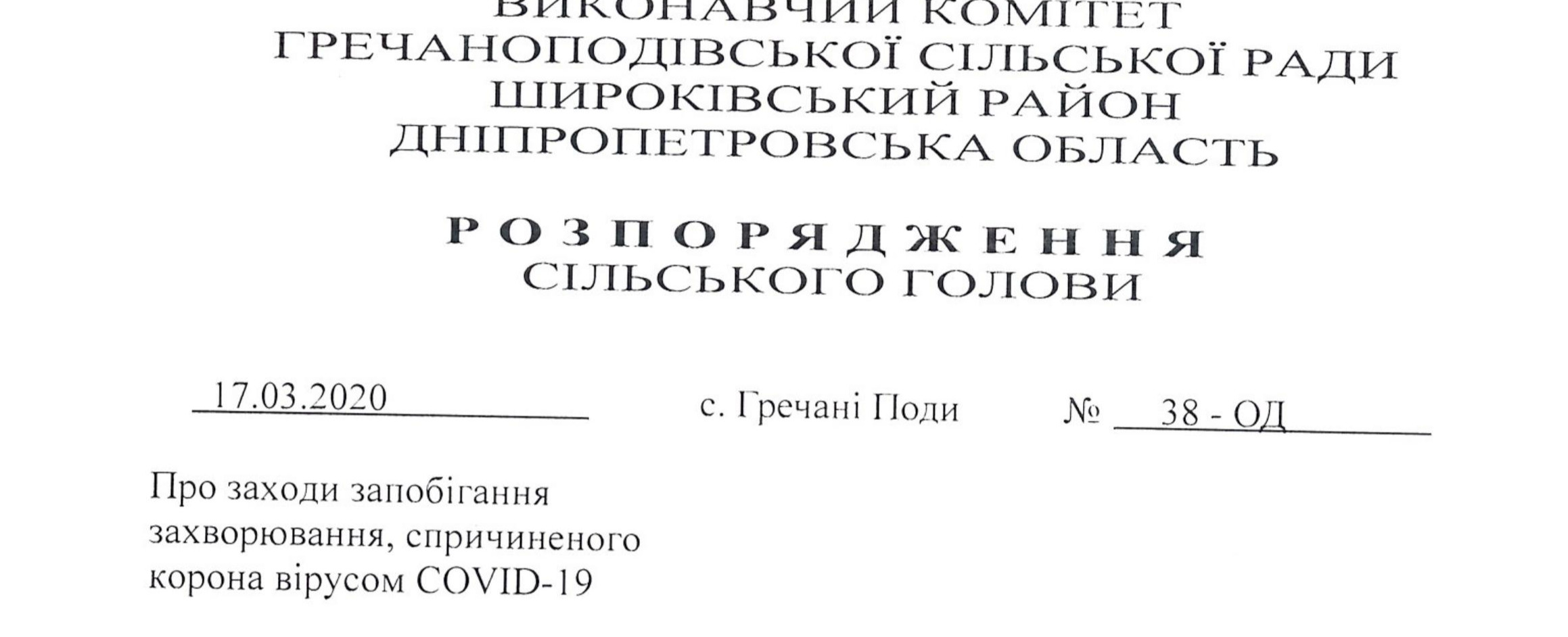 Про посилення карантинних обмежень на території села Гречані Поди Гречаноподівської сільської ради