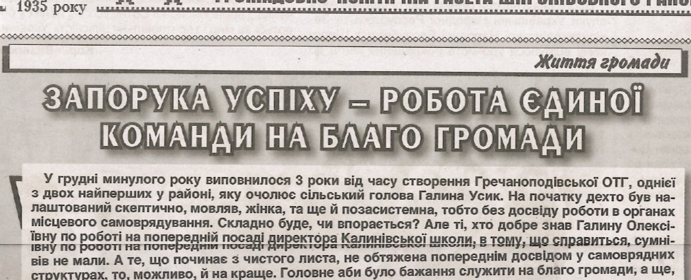 Звіт голови Галини Усик
