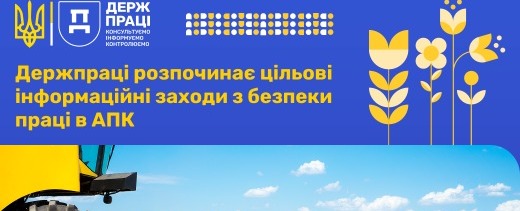 Державна служба з питань праці розпочинає проведення цільових інформаційних заходів з безпеки праці в агропромисловому комплексі (АПК) з метою підвищення рівня обізнаності роботодавців та працівників щодо безпеки праці, а також сприяння зниженню рівня виробничого травматизму та незадекларованої...
